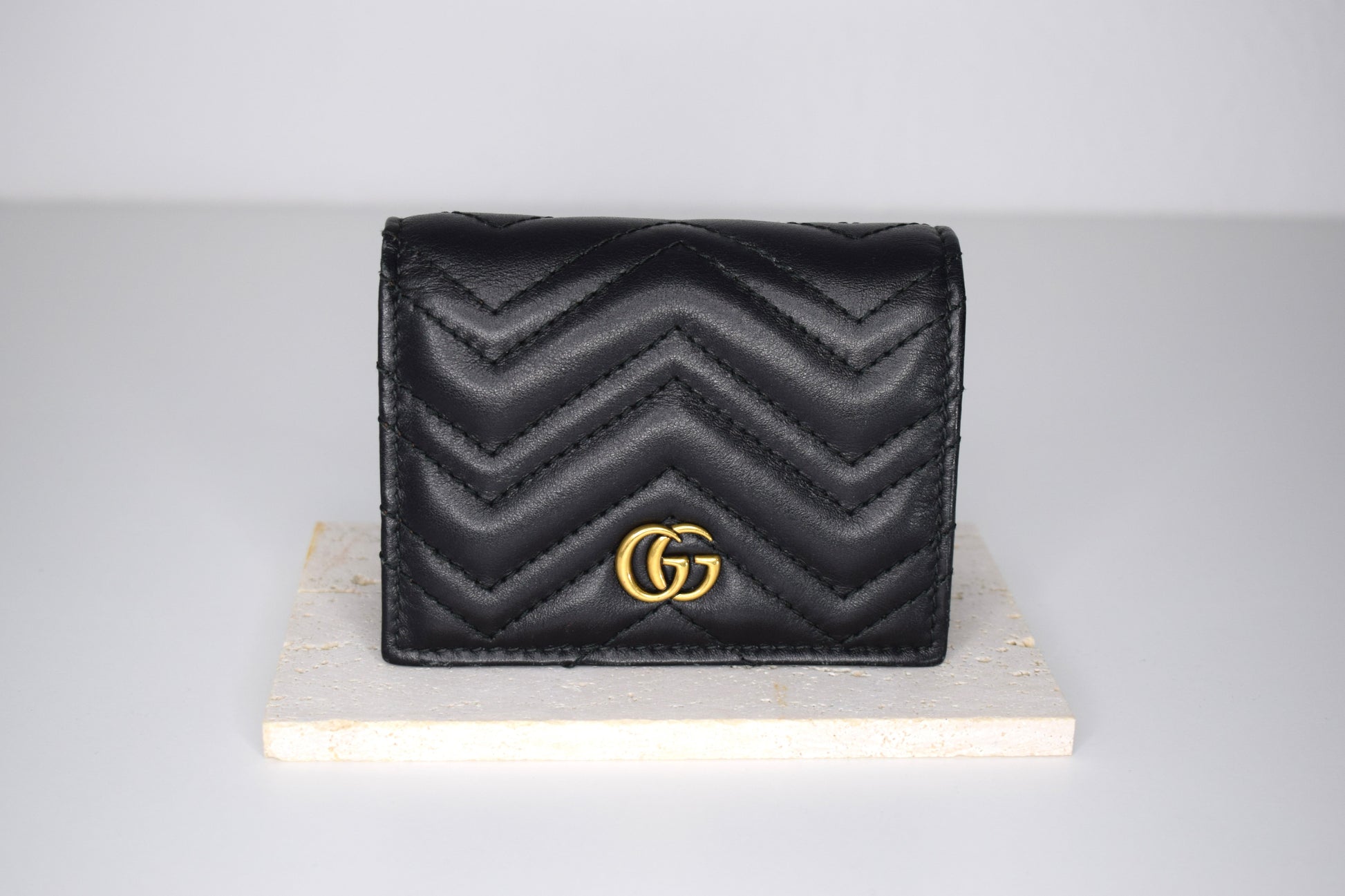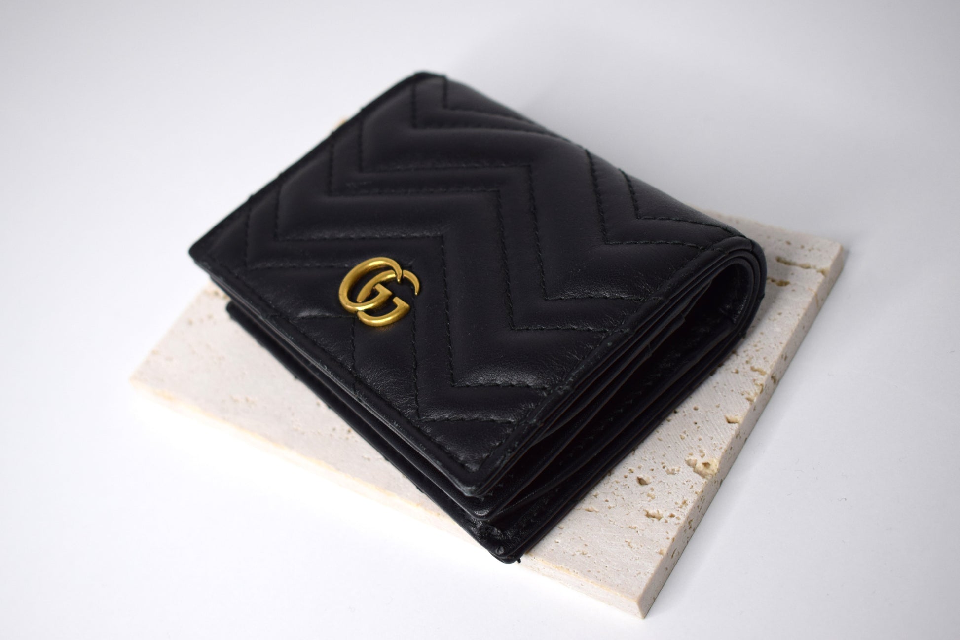 Gucci Marmont Geldbörse Klein Leder Schwarz Gold