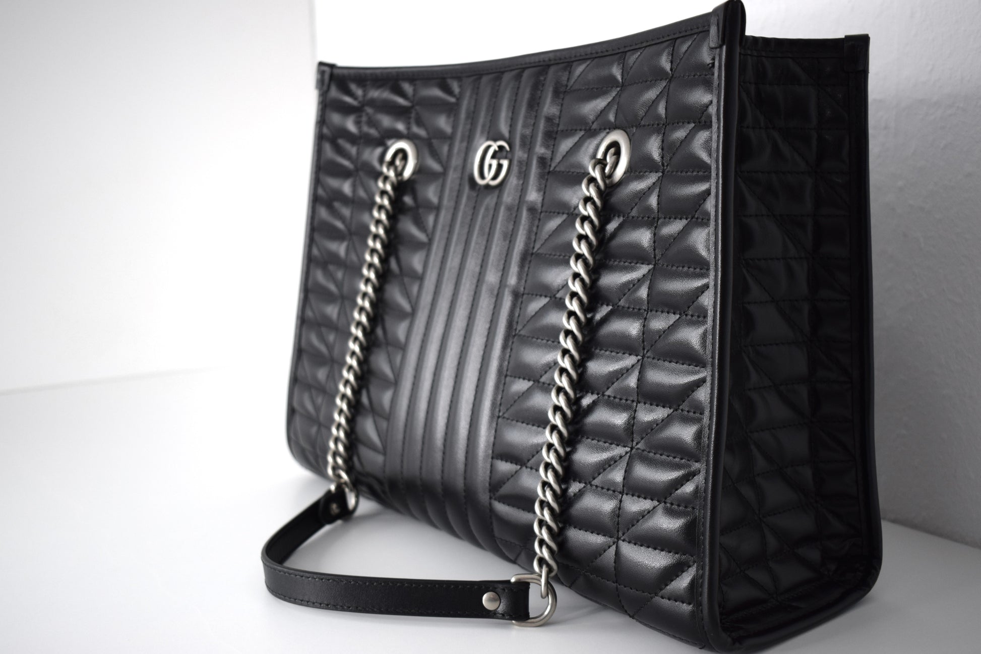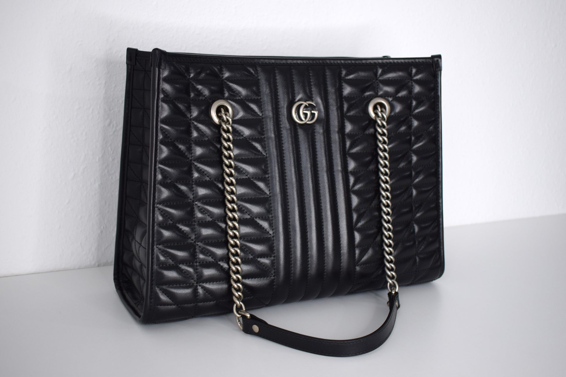 Gucci Marmont Matelasse Tote "Aria" Shopper Schwarz Silber