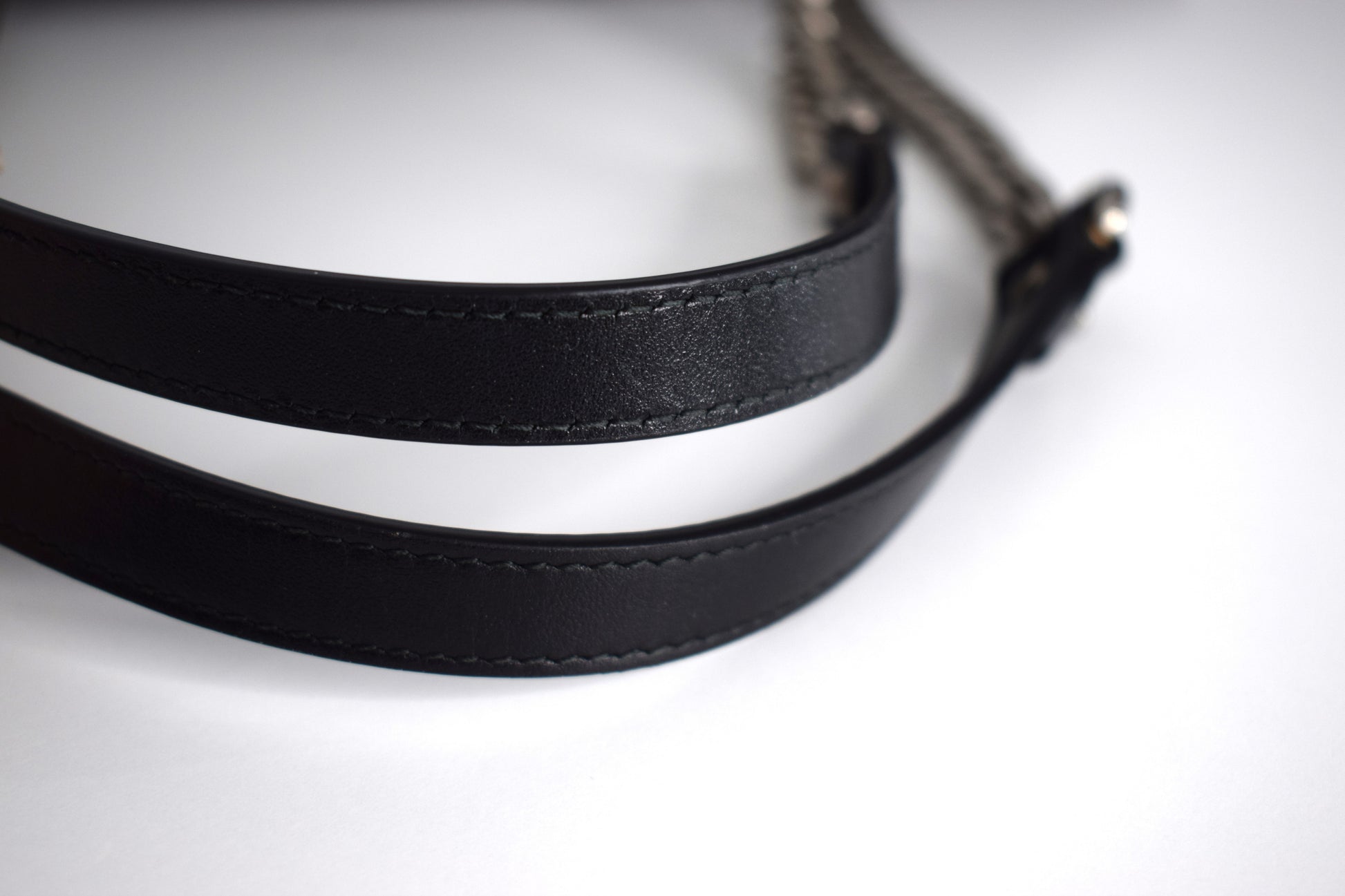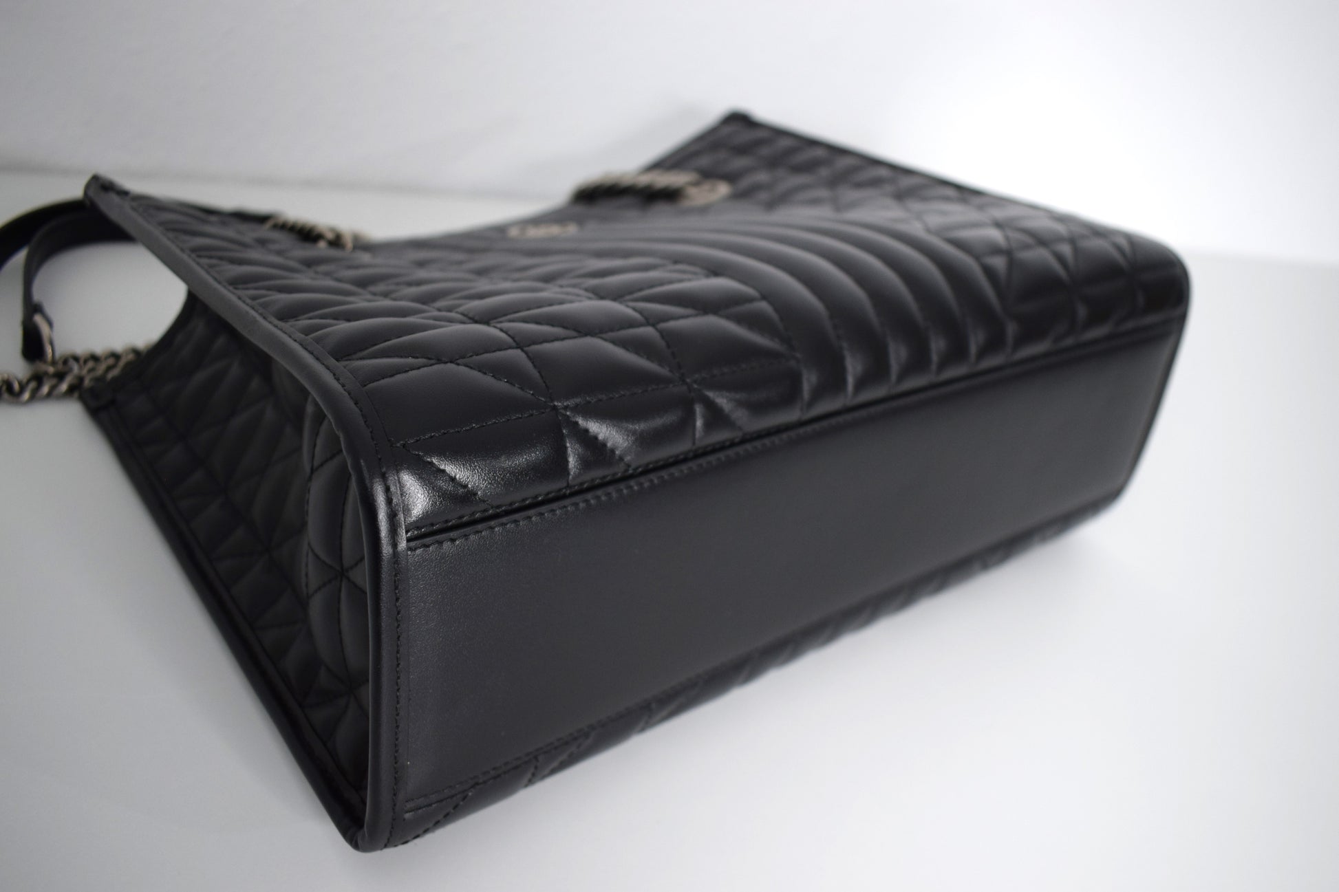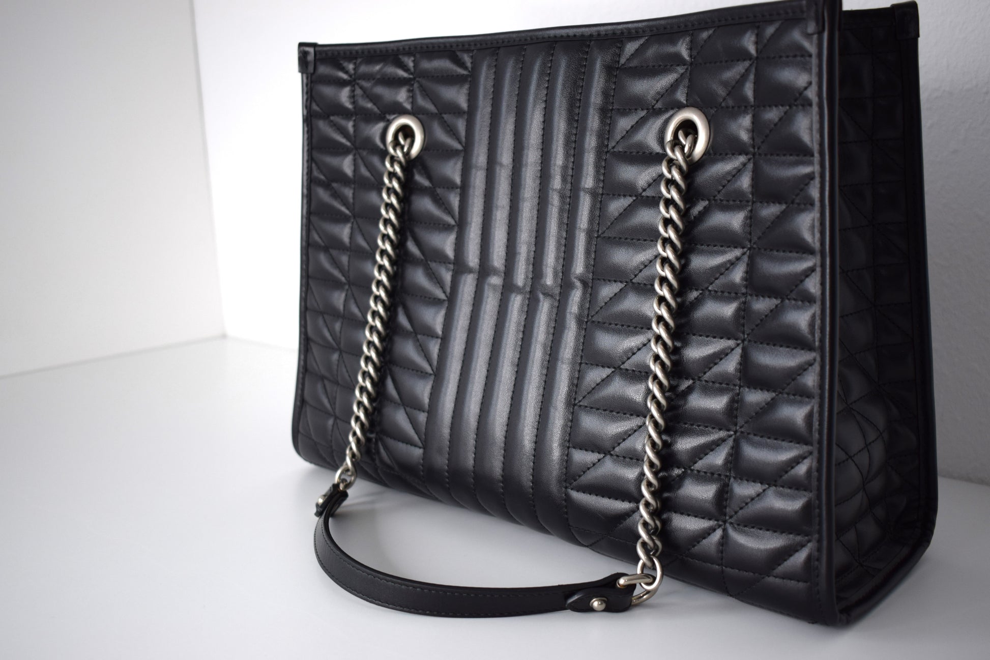 Die zeitlose Schönheit des schwarzen Leders verleiht der Tasche eine klassische Anmutung, während die antiksilbernen Elemente einen Hauch von Vintage-Glamour hinzufügen. Die einzigartigen Kettenriemen-Details setzen diese Tote Bag gekonnt in Szene und verleihen ihr einen besonderen, anspruchsvollen Charme.