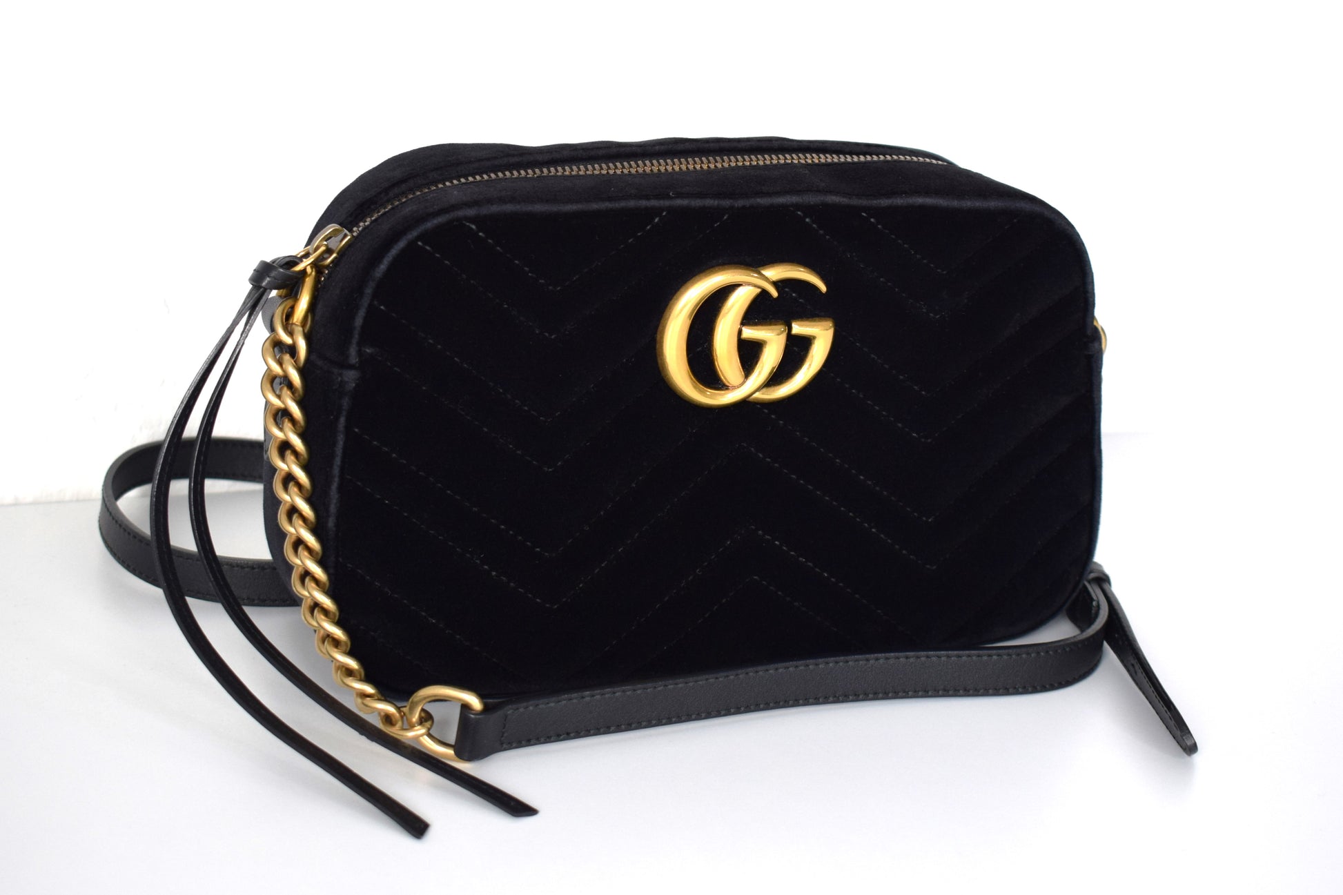 Gucci Marmont Samt Crossbody Bag Schwarz Gold