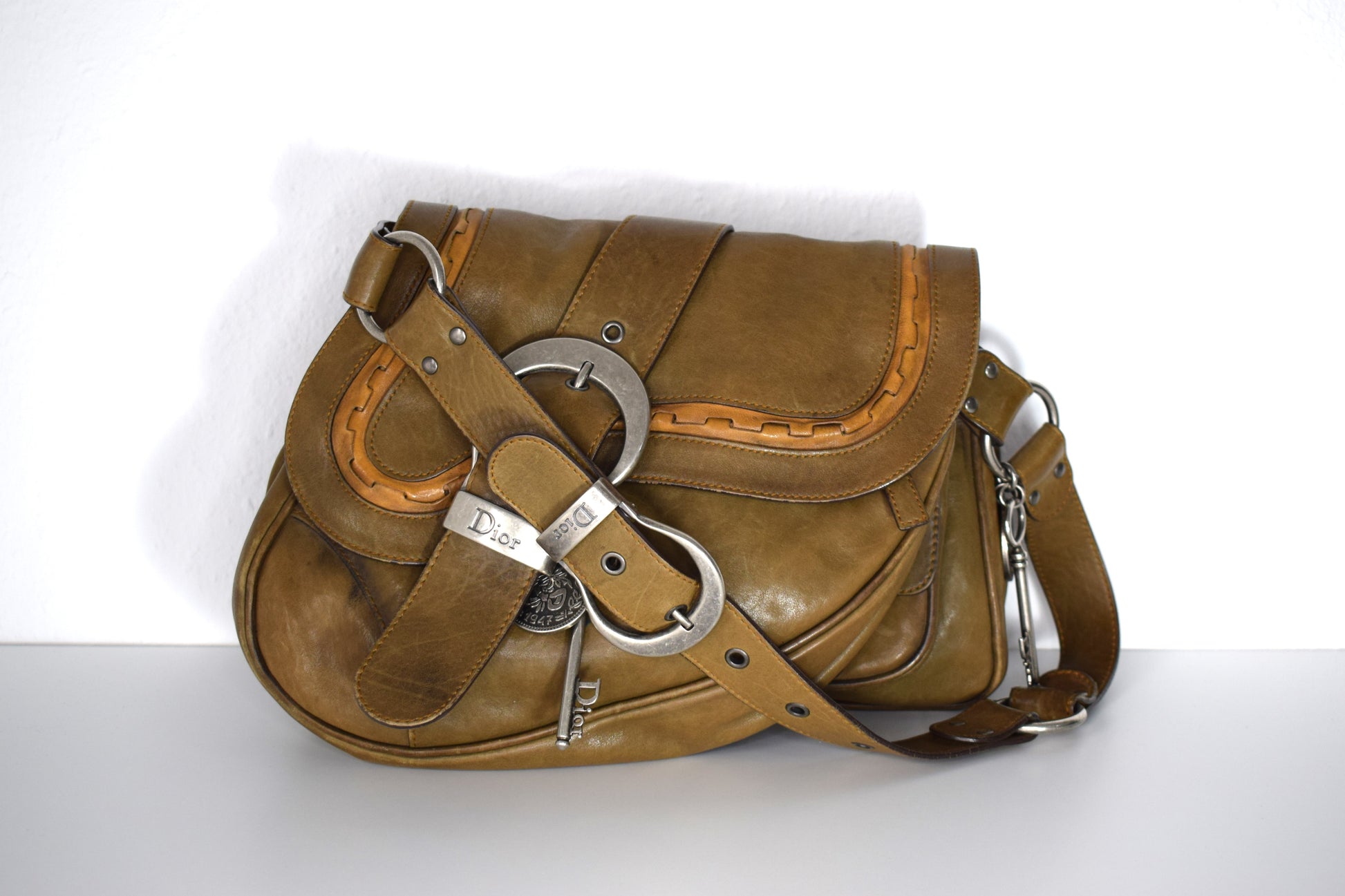 Vintage Dior Saddle Bag "Gaucho" Khaki Olive Double Flap
