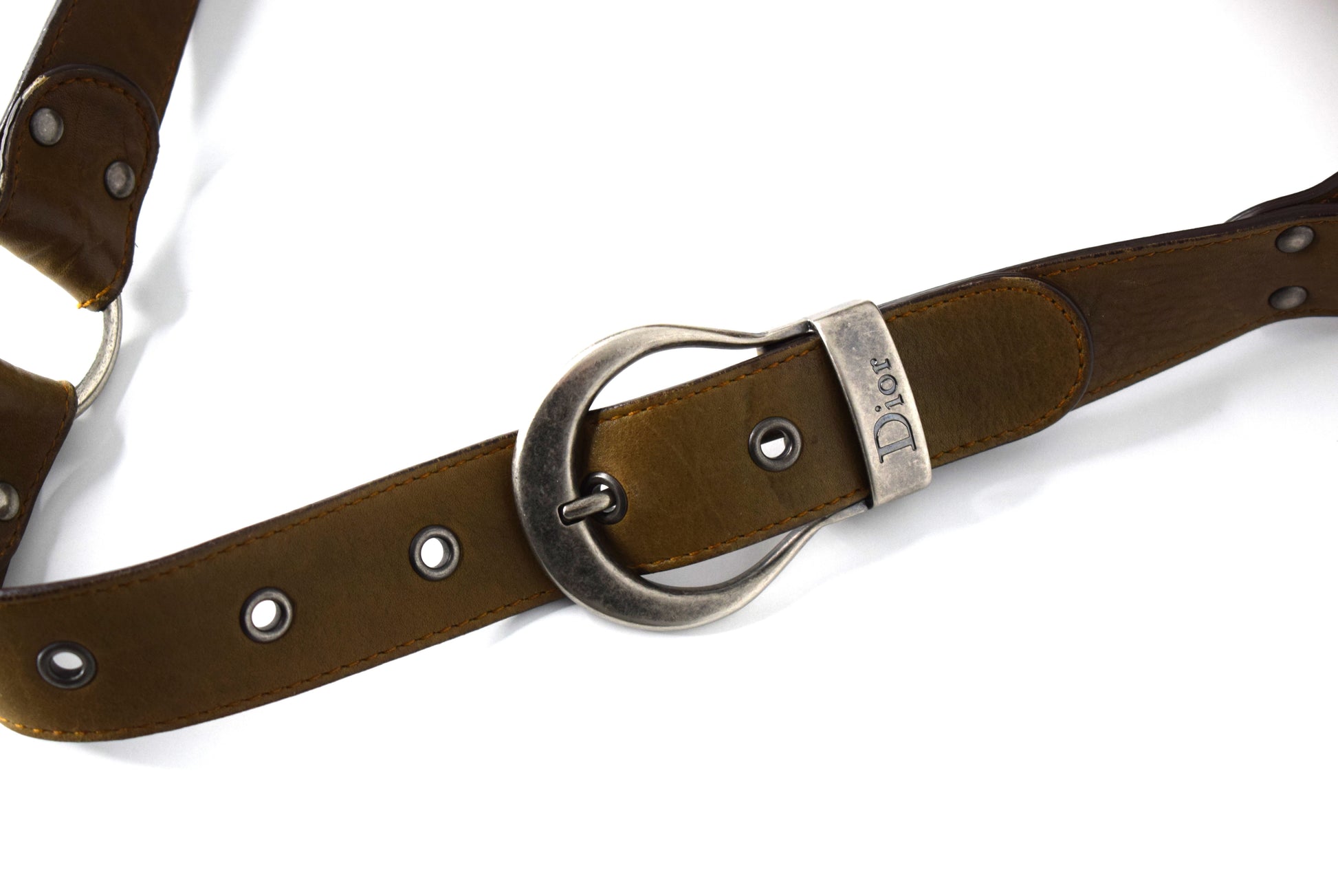 Beschreibung: Erleben Sie zeitlose Eleganz mit der Vintage Dior Saddle Bag, Modell "Gaucho" Double Flap, in einer stilvollen Khaki/Olive-Farbgebung mit braunen Elementen und silbernen Applikationen. Dieses beeindruckende Meisterstück aus dem Hause Dior verkörpert die perfekte Fusion von Stil und Funktionalität.